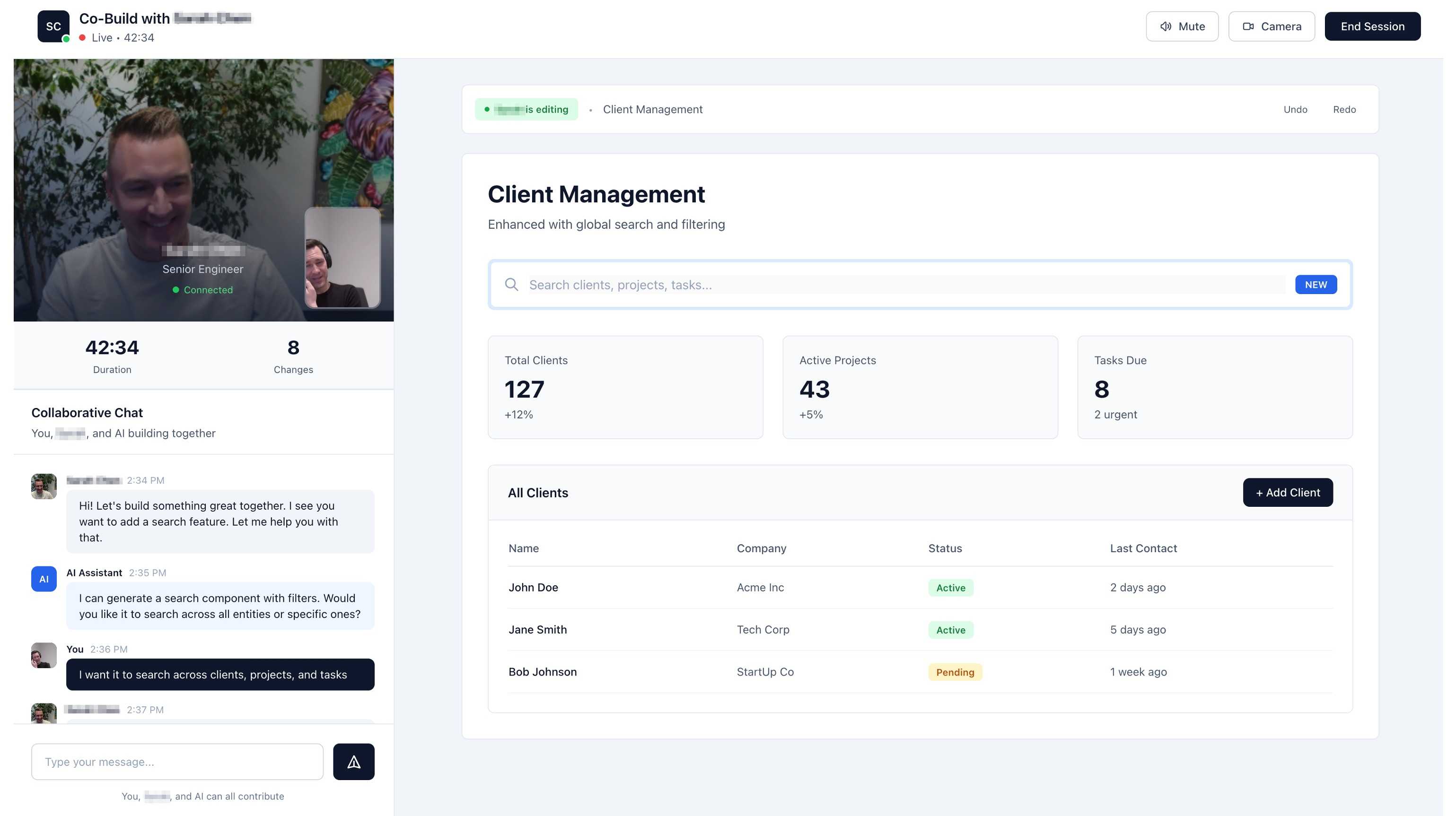 This is how it looks when a business expert co-develops with a software engineer in real-time.